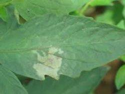 Enfermedad del tomate se manifiesta de 10 a 15 días después de la infección. En este momento, se forman manchas oscuras, a veces de color marrón grisáceo, en las hojas y los tallos de los tomates. En presencia de alta humedad en la habitación, el tizón tardío se evidencia por una floración blanca "esponjosa" en el dorso de la hoja. La etapa inicial del tizón tardío puede no ser perceptible para el agricultor en absoluto, mientras se propaga a las plántulas de tomate cercanas. Sin embargo, con el tiempo, las hojas de los tomates comienzan a cubrirse por completo con manchas oscuras y se caen.