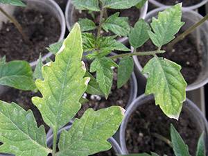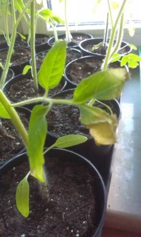 Los tomates son plantas termofílicas que llegaron a nuestras latitudes desde los trópicos. Sin embargo, las altas temperaturas pueden dañar gravemente las plántulas jóvenes. Entonces, la temperatura está por encima de +300C es capaz de quemar tomates. Con tal lesion, tomates ponerse amarillo y arrojar las hojas. Por supuesto, en la primavera, en las condiciones del apartamento, tales registros de temperatura son raros, pero si es necesario, rociar con una solución de urea ayudará a salvar las plántulas de tomate del calor. Para prepararlo, disuelva 1 cucharada de la sustancia en un balde de agua.