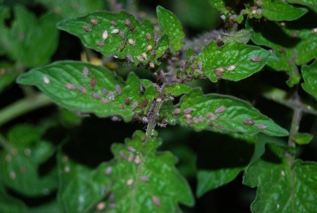 Las hojas jugosas y los brotes de tomates atraen a los pulgones, que pueden parasitarlos durante mucho tiempo. Este insecto aparece en invernaderos, semilleros y plantaciones que crecen en campo abierto.