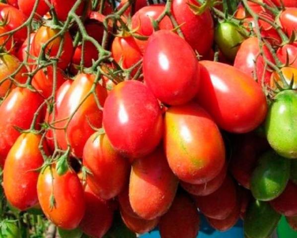 Según las revisiones, los arbustos altos de la variedad de tomate Cio-Cio-San están decorados con racimos de frutos alargados de un sabor increíble. Por un lado, pueden madurar hasta 50-70 frutas al mismo tiempo, cada una con un peso mínimo de 40 gramos. Por lo tanto, un arbusto puede proporcionar al propietario seis kilogramos de tomates.