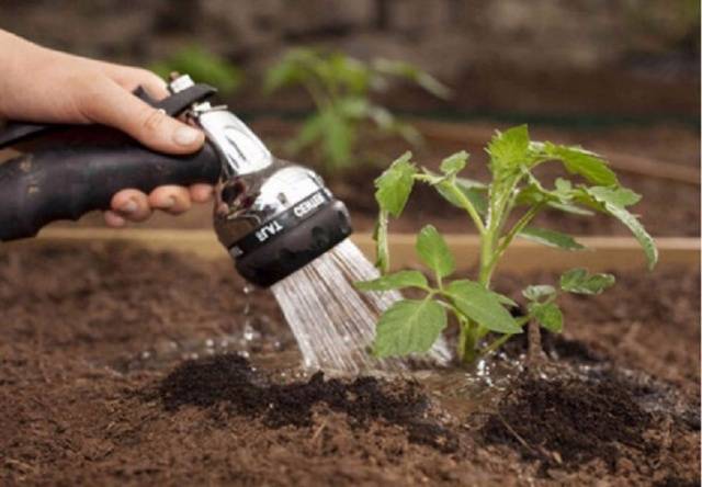 Regando... Aquí, el criterio es el secado de la capa superior del suelo. No debe verter los tomates Chio-Chio-San, pero tampoco debe dejar que las raíces se sequen. El agua para riego se toma tibia y se riega por la noche para que las plantas no se quemen.