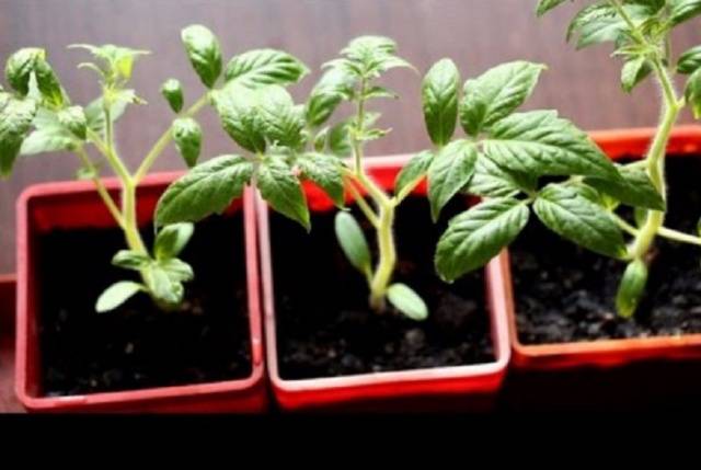 Al trasplantar tomates, asegúrese de profundizar las plántulas en las hojas para acelerar la aparición de nuevas raíces. Según los jardineros, después del buceo, las plántulas de tomate Chio-Chio-San necesitan un cuidado cuidadoso para que las plantas crezcan saludables, como en la foto: