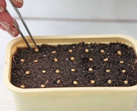 Las semillas, envueltas en una bolsa de lino, se sumergen en una solución de permanganato de potasio durante media hora. Después de la desinfección, se lavan con agua y se secan.