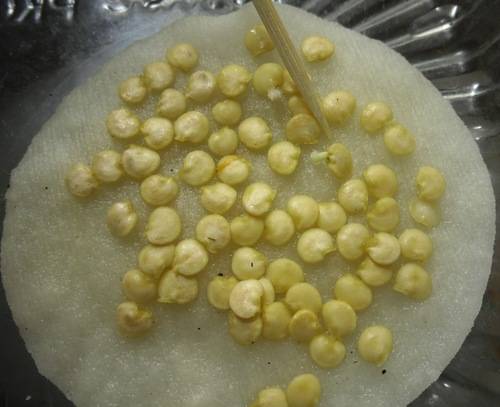 Después de las manipulaciones realizadas, las semillas se pueden colocar sobre un trapo húmedo o goma espuma y esperar hasta que se hinchen. Teniendo en cuenta que antes de esto, los granos de pimienta ya habían estado húmedos y secos durante un buen cuarto de día, y la cáscara se ablandó, se hincharán rápidamente. Los granos de pimienta hinchados se pueden plantar en un contenedor de plántulas o se pueden dejar en un material húmedo hasta que la espina eclosione y se puedan plantar las semillas que ya han eclosionado. El nivel de humedad de la goma espuma o del paño debe controlarse constantemente.
