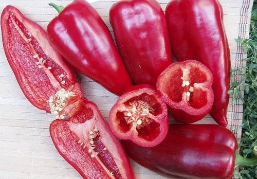 El grosor de la pared es de solo 5 mm y el peso de una sola fruta rara vez supera los 110 gramos. El sabor de la pimienta es medio, es moderadamente dulce, jugoso, no demasiado aromático. Pero tales verduras se pueden almacenar durante mucho tiempo, hasta tres meses. También toleran perfectamente el transporte y son aptos para preparar cualquier tipo de comida.