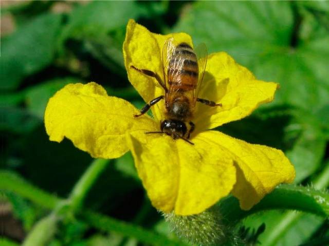 Independiente polinización de pepino También es posible que para esto, el polen masculino deba ser transferido al pistilo de una flor femenina, que tiene un ovario en forma de pepino pequeño en la base. Solo en este caso se desarrollará el fruto de un pepino.