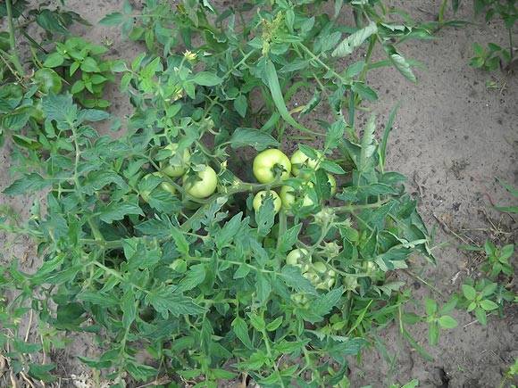 Esta variedad también se puede cultivar en el huerto y debajo de la película, donde los tomates madurarán al final del tercer mes. Los tomates se plantan con plántulas o se siembran inmediatamente con granos en el suelo. Los arbustos son pequeños hasta 0,5 m de altura. Tomates redondos, peso de la fruta 120 g. Este tomate no teme al frío y no requiere cuidados especiales.