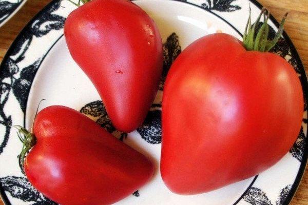 Algunos jardineros experimentados notan que una fruta madura se parece a un corazón en apariencia, pero en la mayoría de los casos se puede comparar con una ciruela alargada. Los tomates crecen de tamaño mediano a grande. Las cámaras de semillas contienen una pequeña cantidad de semillas.