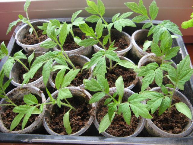 Desde los primeros días después de la germinación de las semillas, las plántulas deben endurecerse mediante una disminución gradual de la temperatura. Cuando aparece el primer par de hojas verdaderas, las plántulas de tomate deben sumergirse en macetas o vasos de turba separados.