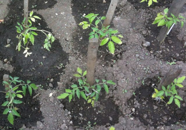 Se recomienda trasplantar las plántulas a campo abierto al alcanzar la edad de 60-65 días. Las fechas estimadas de trasplante son de abril a junio. Esta variedad de tomate no necesita mucho espacio. Una planta para un crecimiento cómodo es suficiente 40-50 cm.2... 1 metro2 Se pueden colocar 3-4 arbustos. La distancia óptima entre hileras es de 40 cm, entre plántulas - 40-50 cm Los lechos de plantación de tomate se colocan mejor en el lado soleado (sur, sureste o suroeste).