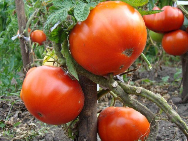 Los arbustos de tomate La miel de Altai puede alcanzar una altura bastante grande, creciendo hasta 2 m. Por lo tanto, las plantas deben atarse a un soporte o enrejado. Debido al gran peso de los frutos del racimo de tomate, también se recomienda un soporte adicional de la miel de Altai para evitar daños en el tallo central.