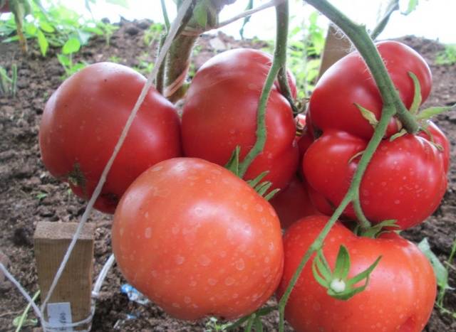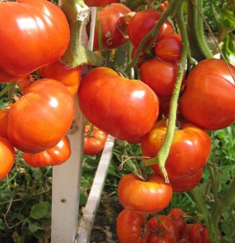 - Se requiere un arbusto alto tengo que atarutilizando clavijas, enrejados u otros soportes. Los racimos poderosos con varios tomates grandes a menudo rompen las ramas, por lo que cada racimo en maduración también debe fortalecerse.