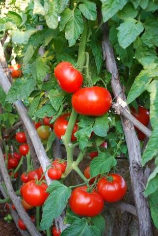 La formación de un arbusto le permite obtener un alto rendimiento y evitar que se espese. Se dejan 7-8 pinceles en las plantas. En la parte superior, los tomates se atan a un soporte.