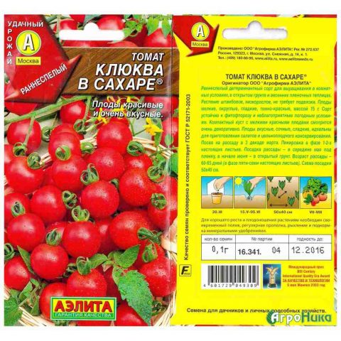 El tomate arándano en azúcar fue elaborado por criadores nacionales de la empresa agrícola Aelita. Sus creadores: M. N. Gulkin, V. G. Kachainik y N. V. Nastenko. La variedad ha superado con éxito todos los estudios y se incluyó oficialmente en el registro estatal en 2012. No hay restricciones sobre el terreno y los métodos de cultivo.