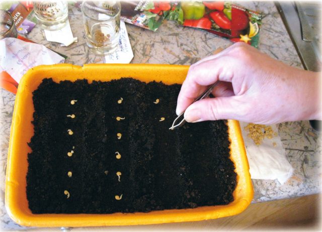 - Llenar los recipientes con tierra. Humedecer la tierra y profundizar las semillas en aproximadamente 1,5 cm. Espolvorear con turba por encima. Selle el recipiente con papel de aluminio transparente. Manténgase caliente durante una semana.