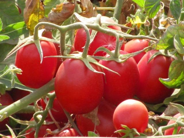 Además de sus propiedades universales para el consumidor, el tomate Marusya también atrae con su maravillosa apariencia. Un exuberante follaje rodea maravillosamente los racimos de frutos rojos pequeños y brillantes que se asemejan a grandes racimos de uvas.