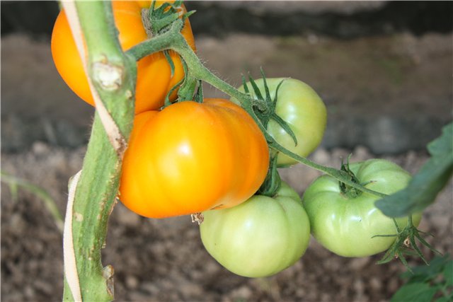 Los tomates se distinguen por un color interesante: no son rojos, como la mayoría de los representantes de la especie, sino de un rico color naranja.
