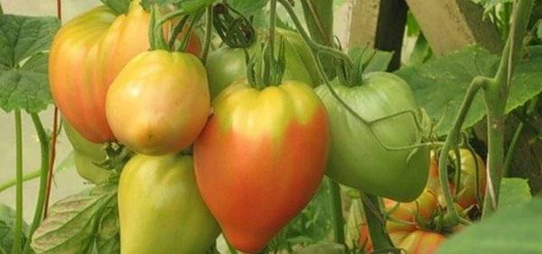 - Los tomates están a mitad de maduración, la fructificación se extiende, lo que es muy conveniente. Los primeros frutos maduran en invernadero antes que otras variedades.
