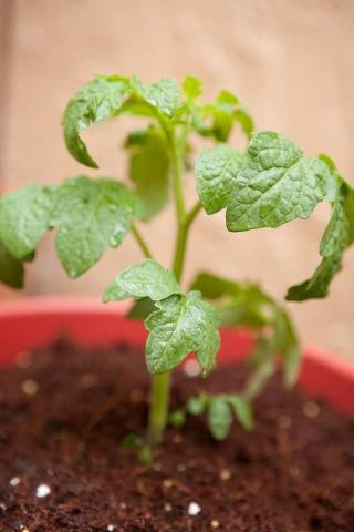 Las plántulas de tomate se cultivan como de costumbre, iluminándolas solo con un exceso de días nublados y falta de sol. Cuando aparezcan 7-8 hojas verdaderas, puede volver a plantar los tomates en un lugar permanente.