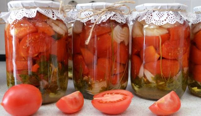 Cabe señalar que en el proceso de conservación, los tomates no pierden su excelente sabor. Las frutas no se agrietan con el envasado de frutas enteras.