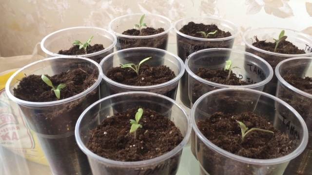 - Primero, las semillas se pueden sembrar en un recipiente común con lados pequeños. Cuando el tomate tiene un par de hojas, se plantan en macetas individuales.