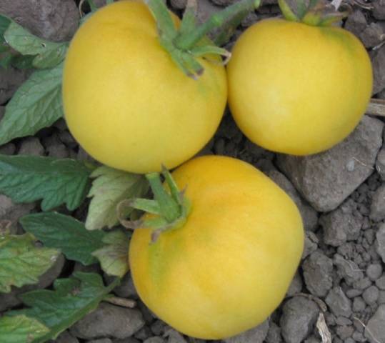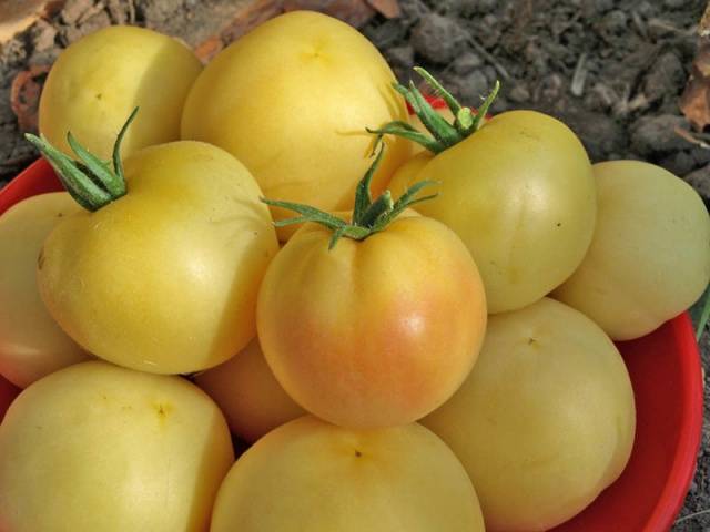 Amarillo melocotón da a las frutas, más bien, un tono cremoso. Los tomates son pequeños, pubescentes. La variedad también es resistente a enfermedades y plagas, agrada con buenos rendimientos.
