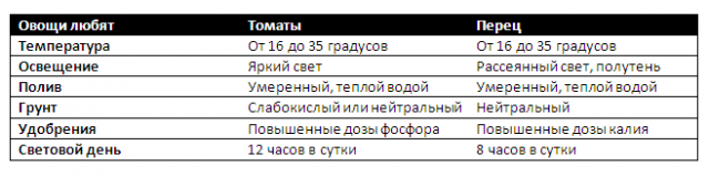 Los pimientos y los tomates pertenecen a la familia de las solanáceas, pero sus necesidades son diferentes. Para ver esto mejor, hemos compilado una tabla comparativa.