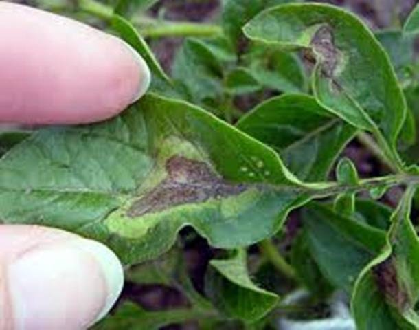 - con el curso de la enfermedad, las hojas se vuelven amarillas, lo que no ocurre con el tizón tardío; da grandes manchas borrosas.