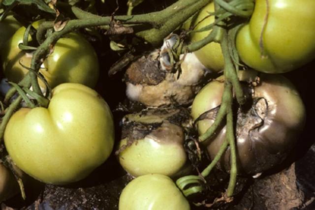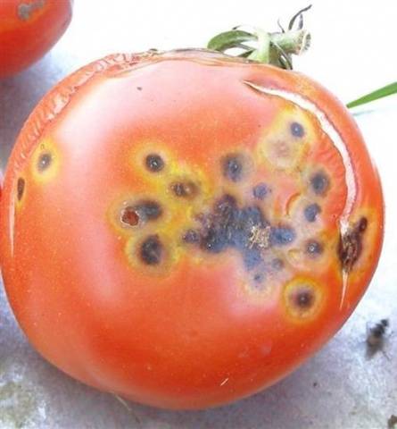 Su patógeno se transfiere con mayor frecuencia de malas hierbas... El hongo se considera un patógeno débil y puede existir durante mucho tiempo en un estado latente en el suelo, pero con un fuerte aumento de la humedad y la temperatura, se despierta. Los primeros signos de la enfermedad del tomate aparecen en frutos maduros en forma de pequeñas manchas deprimidas, que luego se convierten en anillos oscuros. Los tomates comienzan a pudrirse por dentro. Los frutos verdes, los tallos, las hojas y el suelo alrededor de los arbustos también se ven afectados. Para prevenir la enfermedad fúngica de los tomates, se deben tomar las siguientes medidas:
