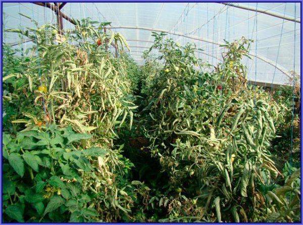 Esta es una enfermedad común del tomate en el invernadero, la foto muestra las plantas afectadas.