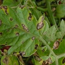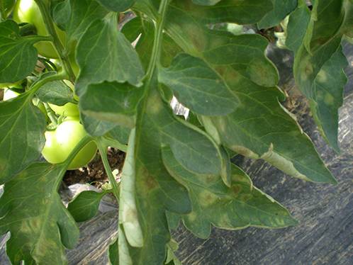 Causando hongos enfermedad del tomate, se activa a alta humedad y temperatura. Los síntomas aparecen como: