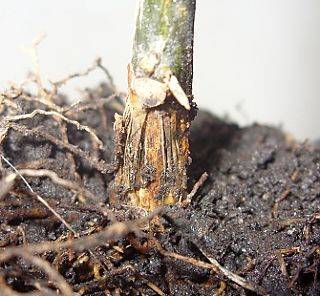 - el tallo parece aflojarse y el cuello de la raíz de los tomates se vuelve negro.