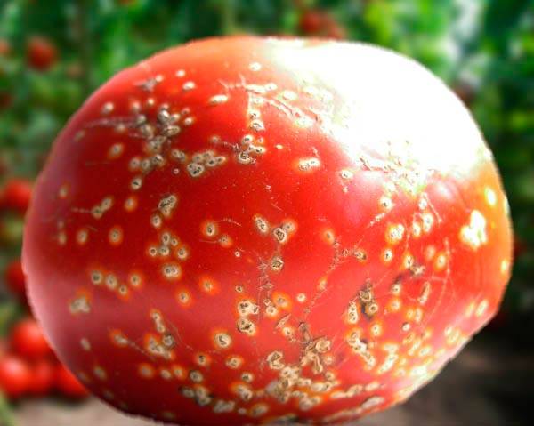 Cuando esto enfermedad del tomate en el invernadero, aparecen manchas secas de color marrón en todas las partes de la planta, incluidos los frutos. Al crecer, provocan el marchitamiento y la muerte de los tomates.