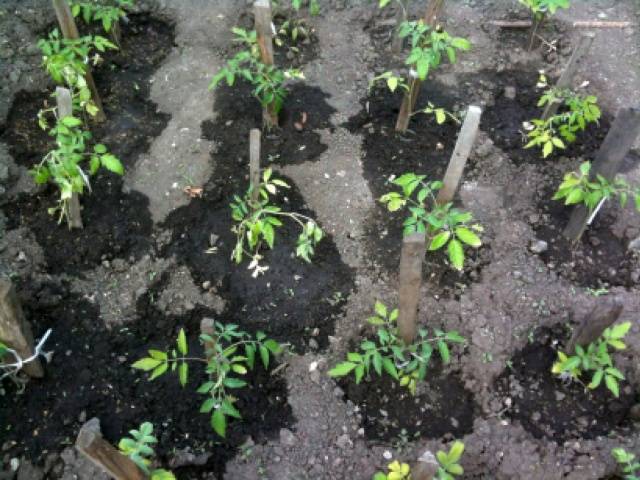 Es mejor plantar plántulas de tomate en campo abierto por la noche después del atardecer. El día antes de la siembra, las plántulas deben regarse con agua tibia, el suelo en las crestas se riega después de que se crean los orificios de plantación. Sujeto a las reglas de preparación del suelo después de la siembra, las plántulas de tomate se sentirán vigorosas, no se marchitarán y no detendrán significativamente su crecimiento. En este caso, durante dos semanas después de la siembra, los tomates en campo abierto no necesitan cuidados especiales. Solo necesitan riego.