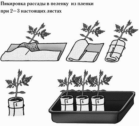 La única nota: no debes apresurarte a bucear. Debe esperar hasta que las raíces ganen fuerza, aparezca una cantidad suficiente de hojas. Las plántulas de tomate se siguen cultivando con pañales. Interesado ya?