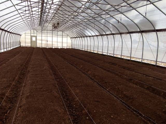 - El suelo del invernadero debe excavarse cuidadosamente para que se formen lechos de hasta 0,4 m de altura y 0,9 m de ancho, dejando un espacio libre de 0,6 m entre los lechos con plantas.