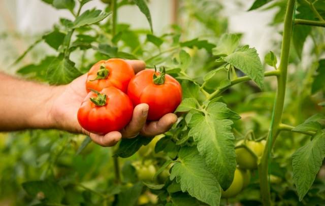 Los frutos de los tomates se recogen cuidadosamente junto con el tallo.Coseche después de que los tomates se pongan rosados. Si los deja hasta que estén completamente maduros, los frutos posteriores perderán masa.
