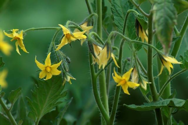 Durante la floración, los tomates se alimentan con boro. Esta sustancia aumenta el número de flores, favorece el desarrollo de los ovarios y aumenta el rendimiento. El procesamiento se realiza una vez por temporada.