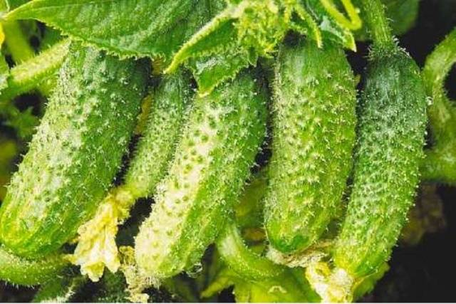 Variedad tardía universal para encurtir. Uno de los encurtidos de maduración tardía más populares. Frutos de piel fina, pero fuertes y grandes. El sabor es excelente, la pulpa es firme y crujiente.El peso de un pepino en escabeche puede alcanzar hasta 190 g. Los arbustos son muy poderosos, trepadores. El tallo crece hasta tres metros. Las ramas pueden dar mucho, los ovarios frutales están agrupados. Posee alta resistencia a los principales tipos de enfermedades. Se extraen hasta 5 kg de excelentes pepinos encurtidos de un metro cuadrado. Tolera bien una caída de temperatura, la fructificación continúa hasta las heladas. Cultivado en todas partes. A los jardineros les gusta mucho plantar esta variedad en la segunda mitad del verano para recolectar frutas frescas hasta finales de otoño. Para evitar que el rendimiento disminuya durante la ola de frío, es necesario reducir el riego. La planta se forma pellizcando el brote después de 5 hojas y extrayendo correctamente los ovarios laterales. El pepino en escabeche se cultiva mediante plántulas o mediante siembra directa en el suelo. Las plántulas están listas para trasplantar en un mes. Esto debe tenerse en cuenta al elegir un marco de tiempo.