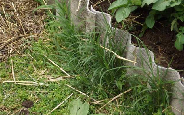 - Por extraño que parezca, suena, pero simplemente puede ignorar el pasto de trigo en el jardín para combatirlo. En este caso, el cartón se coloca directamente sobre las plantas, se coloca una variedad de restos de plantas en la parte superior, que se cubre con una capa de tierra fértil. Los bordes de una cama de jardín improvisada se pueden recubrir con piedras o ladrillos y se pueden plantar allí las plantas de jardín. El pasto de trigo no puede sobrevivir bajo tal estructura.