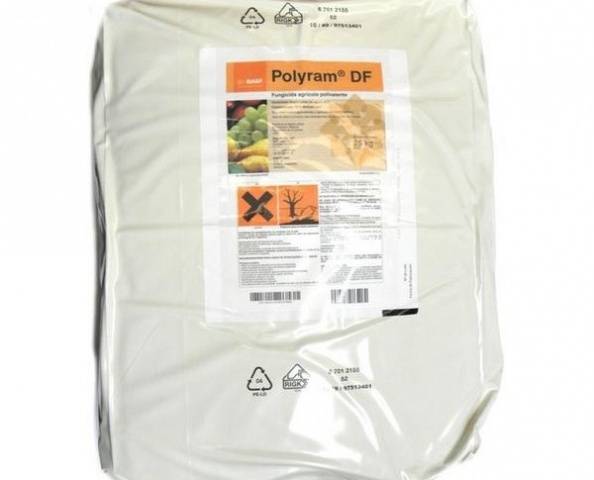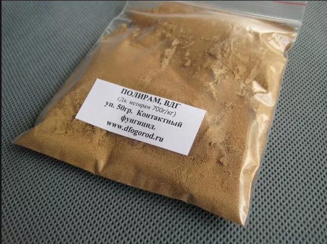 Para proporcionar a las plantas una protección fiable contra los patógenos, es necesario diluir 40 g del fungicida Poliram en 10 litros de agua y los arbustos deben tratarse minuciosamente. La pulverización se realiza tres veces con un intervalo de 19-20 días. Consumo - 40-60 ml por 1 m2.