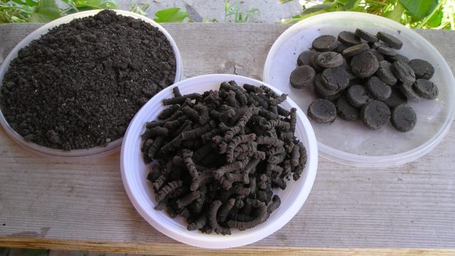 Como se discutió anteriormente, los lignohumatos se producen en forma seca y líquida. La primera opción está representada por gránulos de varias formas. Se parecen a las tabletas redondas, una masa que se pasa a través de una picadora de carne o un polvo con grandes fracciones. El ingrediente activo en los gránulos secos de lignohumato AM de potasio contiene hasta un 90%.