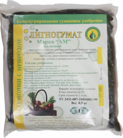 - Lignohumate mejora la composición del suelo, proporciona a las plantas todas las sustancias útiles;