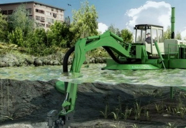 La explotación de Sapropel comienza en primavera, mientras que hay poca agua en el embalse. Para hacer esto, use una draga de succión con abresurcos, que extraen hasta 30 m³ a la vez.