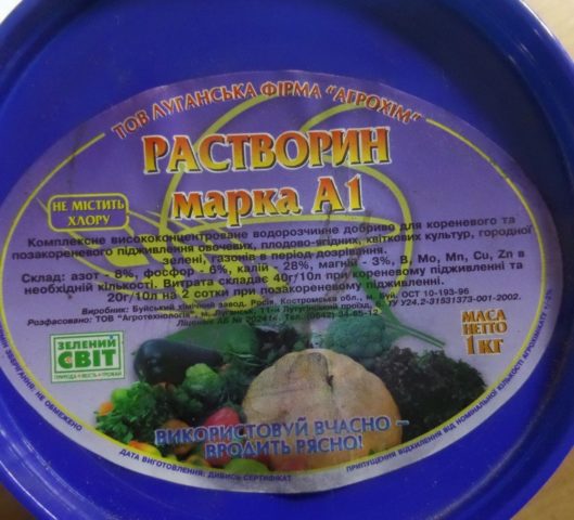Para cultivos en crecimiento, la solución de fertilizante se usa al comienzo de la temporada y para los aderezos posteriores. El horario para cada tipo de planta es individual.