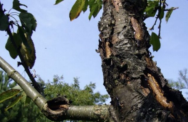 Es necesario combatir la enfermedad del tronco de la cereza, ya que las infecciones y las bacterias penetran en las heridas de la corteza, lo que puede provocar la muerte de la planta.El tratamiento consiste principalmente en el hecho de que la goma de mascar se corta cuidadosamente para obtener madera sana, y luego las heridas en el tronco y las ramas se tratan cuidadosamente con brea de jardín o sulfato de cobre.