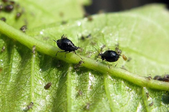 Los pulgones de la cereza aparecen con mayor frecuencia en las hojas jóvenes a fines de la primavera. Exteriormente, la plaga es un pequeño insecto de color verde o negro, los pulgones se encuentran principalmente en la parte inferior de las hojas. La plaga es peligrosa para las cerezas porque se alimenta de los jugos de sus hojas y puede destruir casi por completo la corona verde.