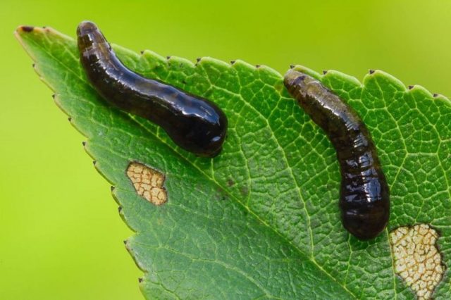 Entre las plagas de las cerezas, la mosca de sierra babosa de la cereza es peligrosa; afecta principalmente a la masa verde. Un insecto adulto tiene un cuerpo negro brillante de hasta 6 mm de largo y dos pares de alas transparentes de hasta 9 cm de envergadura. La larva de la mosca de sierra de la cereza alcanza una longitud de unos 10 mm, de aspecto amarillo verdoso y cubierta de moco negro.
