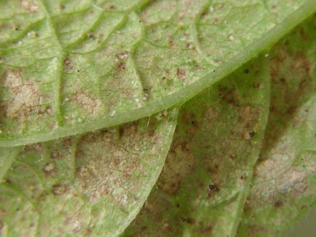 Los ácaros aparecen en las cerezas principalmente después de la floración.Puede reconocerlo por los siguientes signos: manchas pequeñas rojas, plateadas o amarillas, manchas blancas en la parte inferior de las hojas o membranas aracnoideas blancas entre las hojas y los tallos. El último signo indica una derrota grave y a gran escala por parte de la plaga.