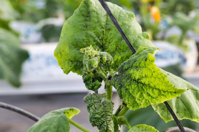 Otro peligro para los pepinos es que estos insectos son portadores de enfermedades virales peligrosas como el mosaico. Al perforar las hojas, estas plagas transmiten el virus directamente a los tejidos internos de la planta, lo que conduce a una infección rápida y extensa, que generalmente resulta en la muerte de las plantaciones.
